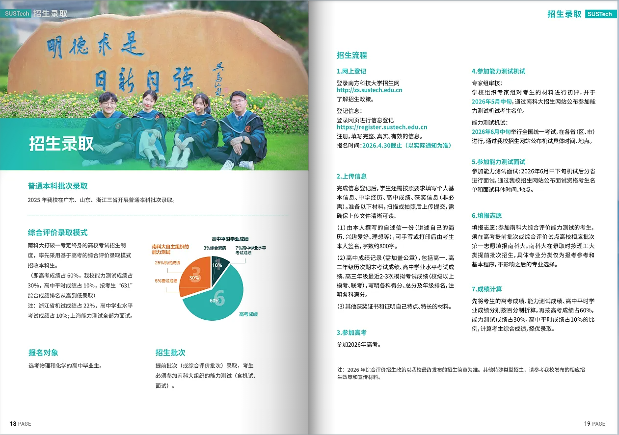 重磅!2026年南方科技大学本科招生手册发布,自主选拔在线第一时间进行更新,一起来看。