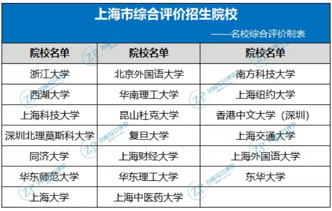 上海市综评招生院校