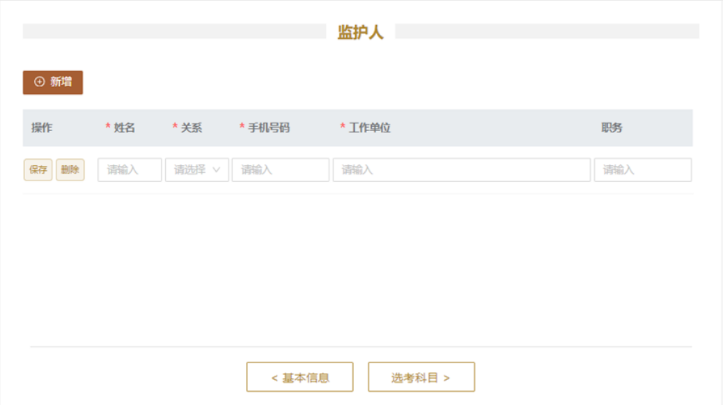 4.【监护人】模块中,需填写父亲、母亲等家庭成员信息。