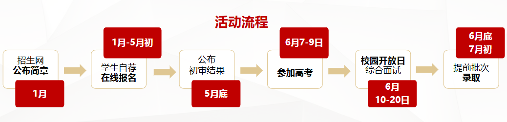 ✅报名材料:①自述信一份;②高中成绩记录(需加盖公章);③其他获奖证书和证明自己特点、特长的材料。