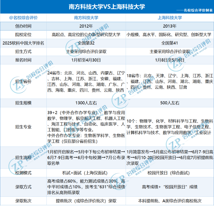 2026年综合评价怎么选?南方科技大学VS上海科技大学