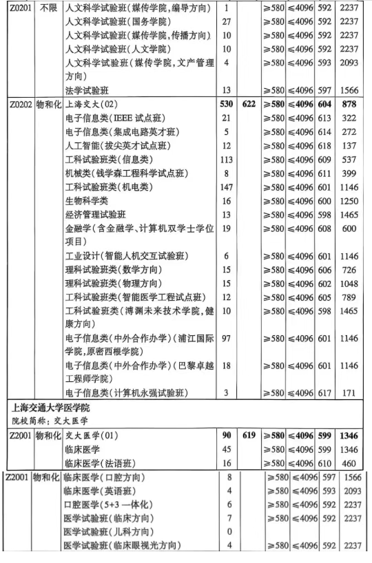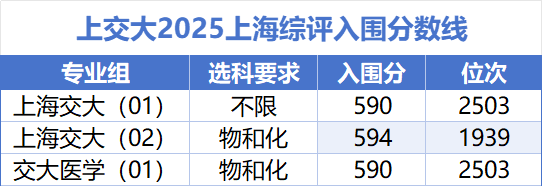 上交2025上海入围分在590分以上,各专业组入围分及位次如下: