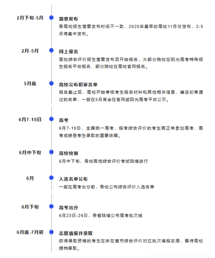 根据往年综合评价进程,梳理2026年综合评价招生流程,以供考生家长参考: