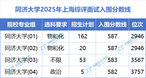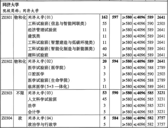 ✅同济大学将分专业组依据考生专业志愿填报情况,按综合成绩从高到低进行拟录取。专业录取时采取分数优先原则,不设专业级差。