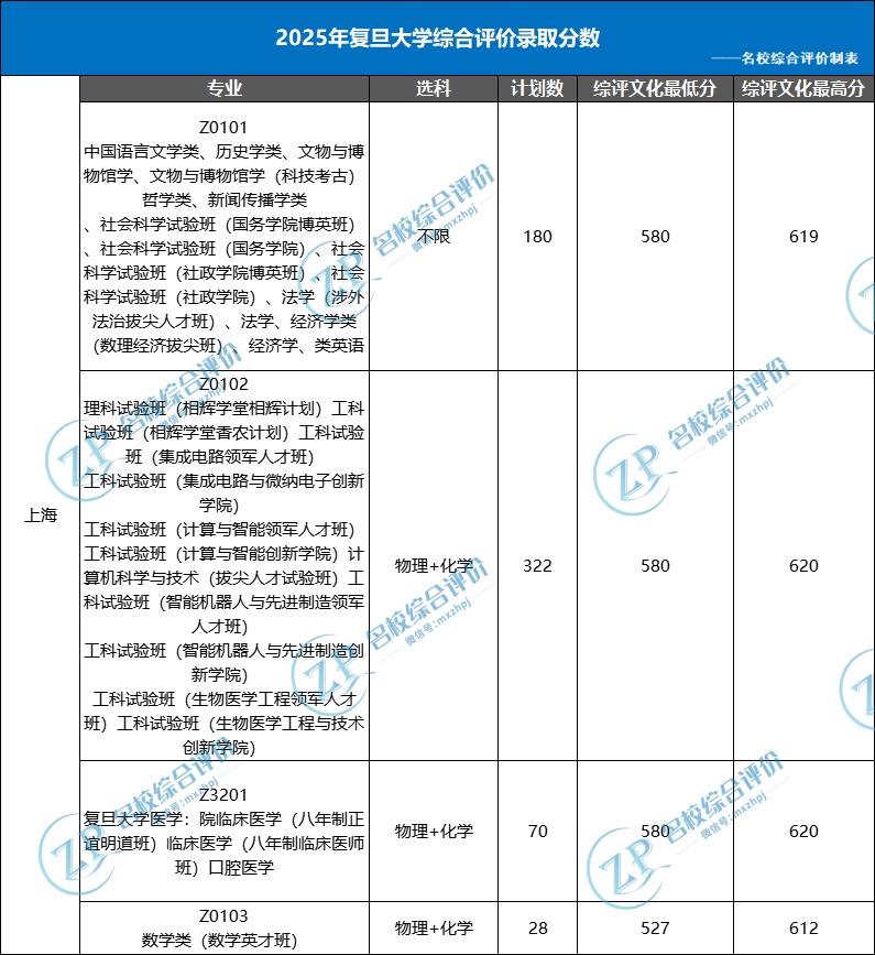 ✅2025年复旦大学上海综评录取分数线