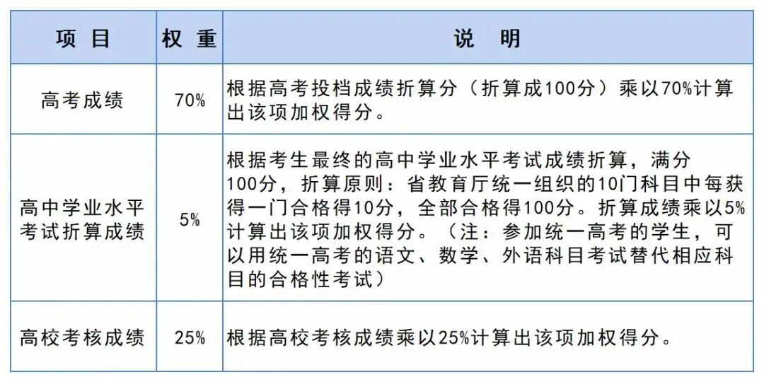 ✅综合成绩由高考成绩(占70%)、高中学业水平考试成绩(占5%)、校测成绩(占25%)组成。