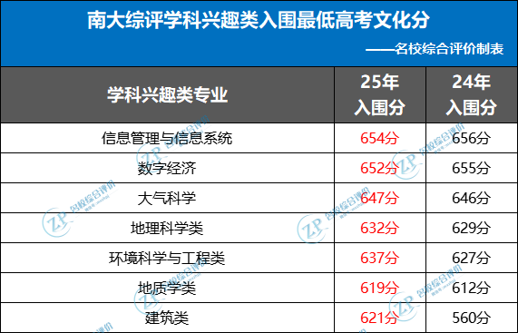 以下是南大综评学科兴趣类考生入围最低高考分数,供考生家长参考↓