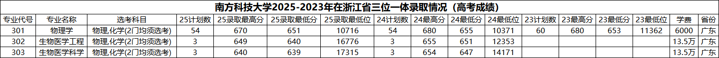 2025年,南方科技大学在浙江试水平行志愿招生,招生计划3人。三位一体录取最低分比平行志愿低9分(位次4000左右)。
