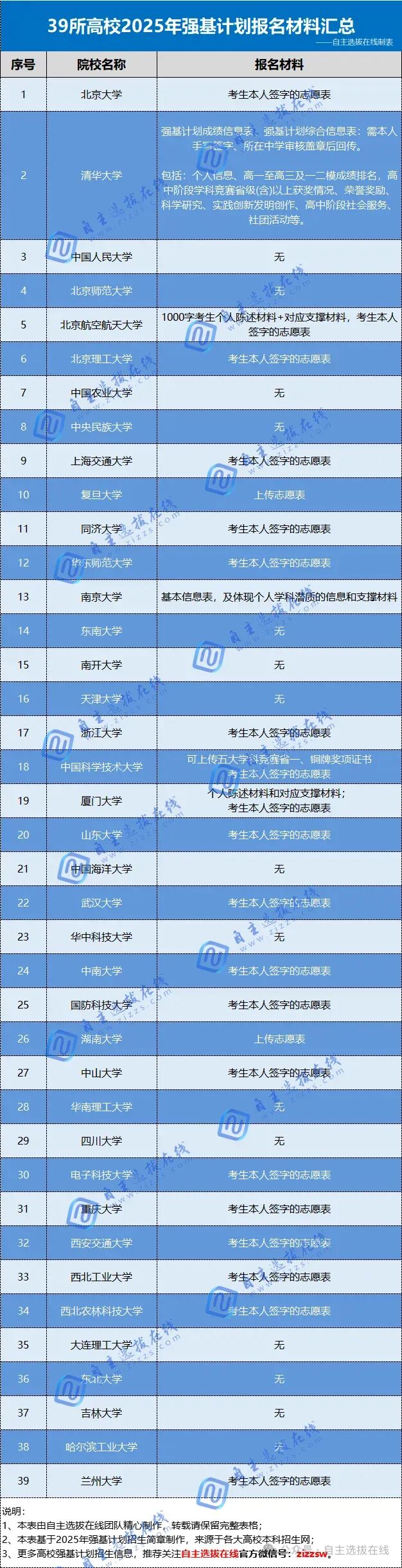 以下是2025年39校强基计划报名材料汇总表: