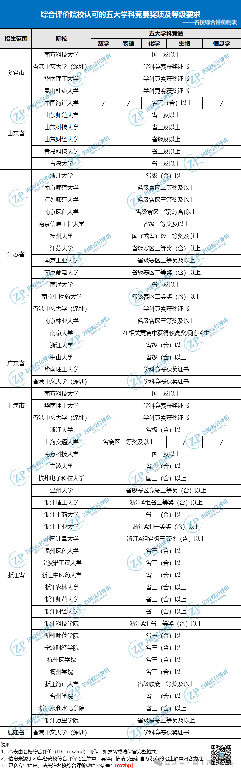 注:各院校认可赛事有差别,具体情况以院校综合评价招生简章为准。
