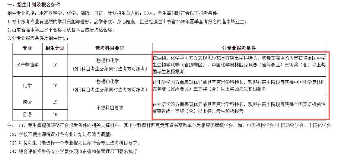 例如:中国海洋大学在2025年综合评价招生简章中明确提出,水产养殖学、化学专业欢迎获得全国中学生生物学联赛、中国化学奥林匹克竞赛省级赛区三等奖及以上奖项的考生报考。