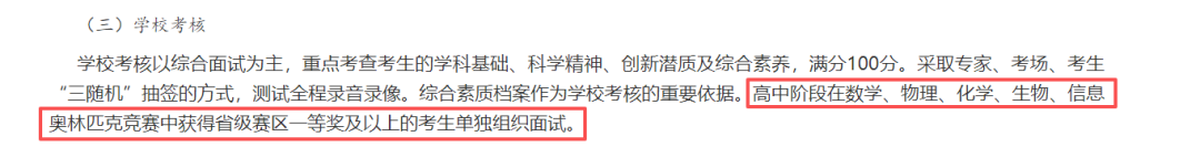 山东大学2025综合评价招生简章中表示,获得省一及以上奖项的同学在校测阶段单独组织面试。
