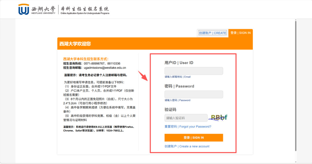 1、打开网址https://ugadmission.westlake.edu.cn/ ,然后点击“创建账户”。
