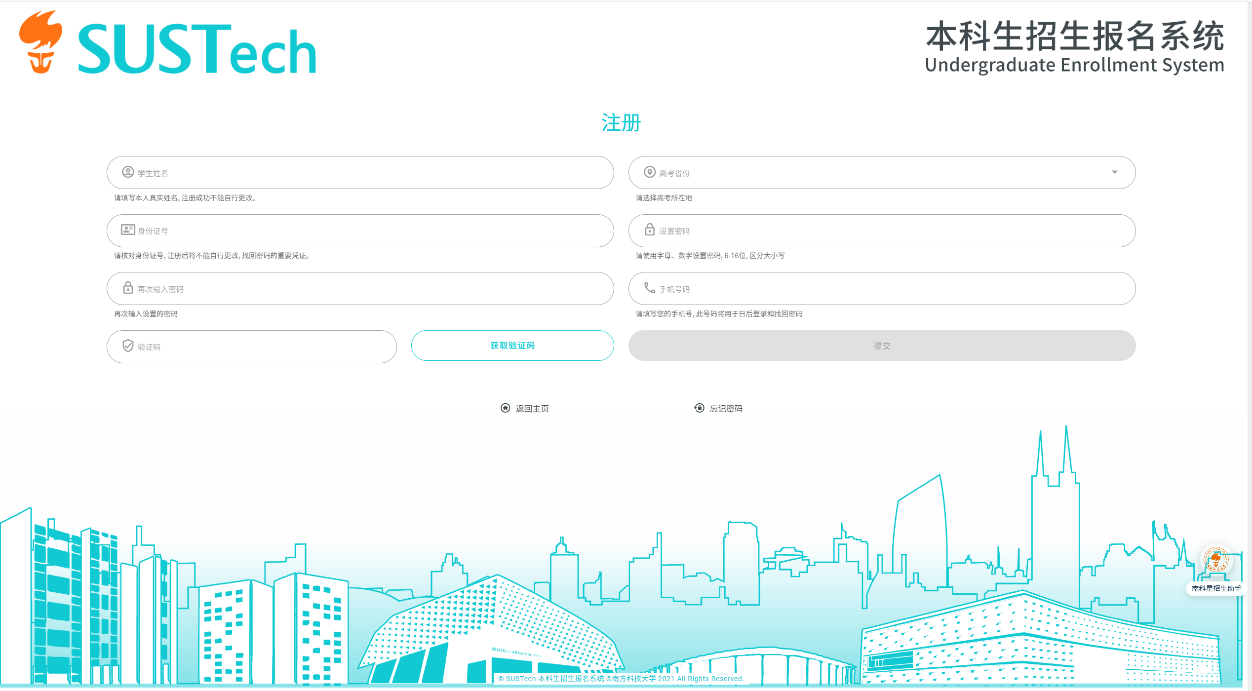 考生姓名、身份证号码、高考地区三项在注册后无法自行更改。如有错误,请在工作时间联系南科大招生办技术支持电话0755-88010514或联系招生办邮箱申请更正。