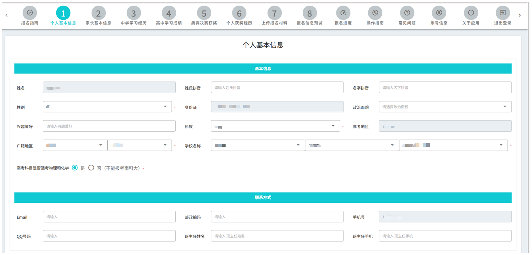 注册账号并完成登录后,考生按照报名系统顺序依次录入信息和上传材料。