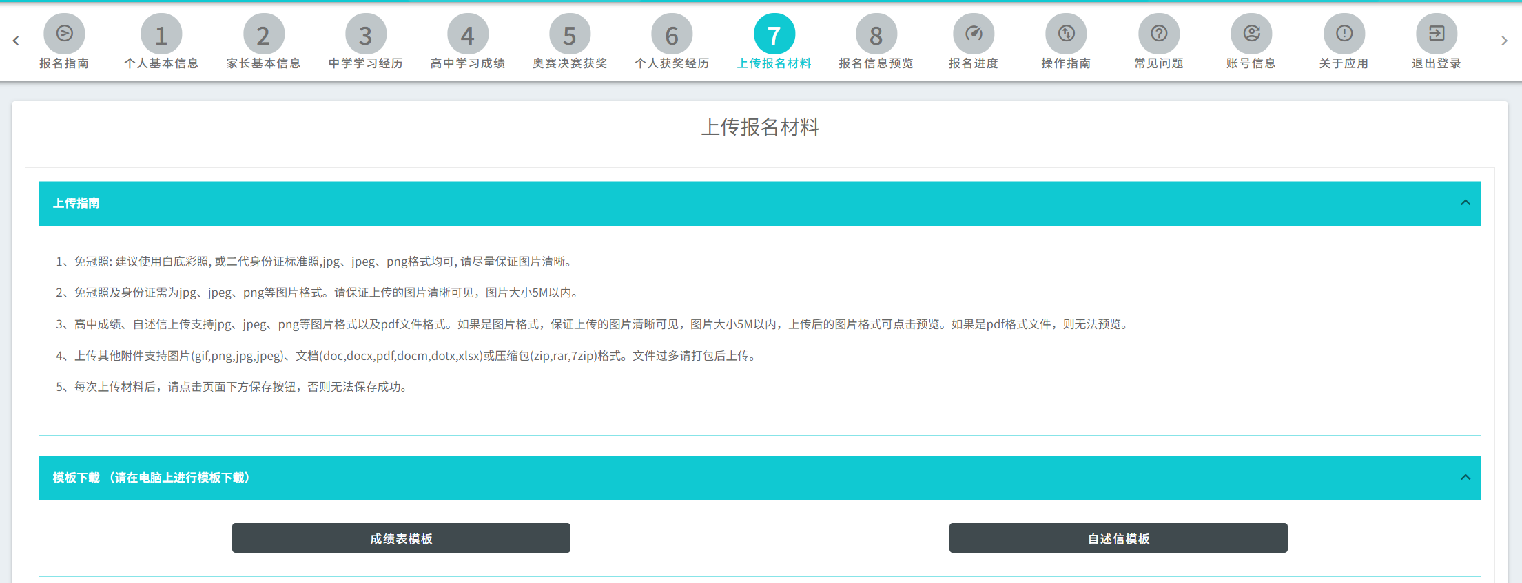 建议在电脑端上传此部分报名材料。如果发现上传的图片、材料有误或有更新,可以重新上传。原先上传的图片、材料就会被新上传图片、材料覆盖。