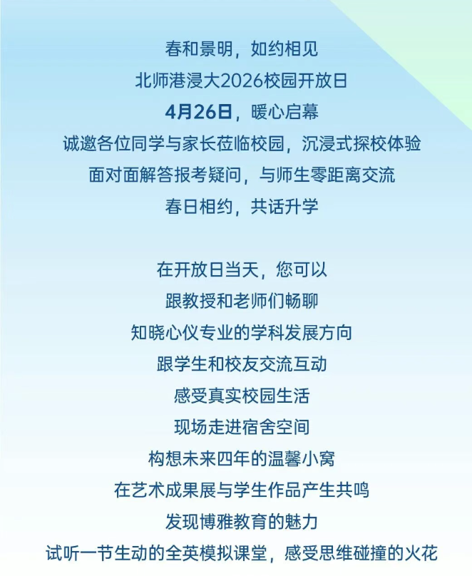 北师香港浸会大学2026年校园开放日4月26日举行,自主选拔在线第一时间更新相关内容,一起来看。