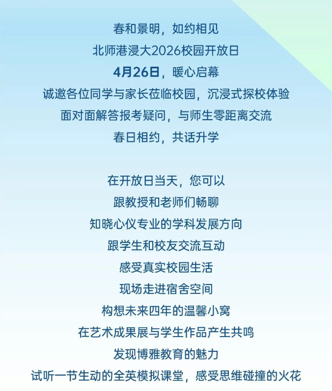 北师香港浸会大学2026年校园开放日4月26日举行,自主选拔在线第一时间更新相关内容,一起来看。