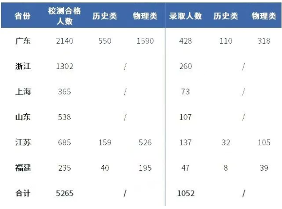 分省份看,广东为核心生源地,三年录取人数持续领跑,2025年达428人,较 2024年增34人、2023年增90人,是唯一连续扩招的省份;浙江录取人数三年稳定在235-260人,2024-2025年持平,增长乏力。其余省份2025年录取人数均有不同程度下滑:山东减13人、福建减9人、江苏/上海各减7人,仅广东逆势增长,呈现 “广东独增、多省收缩” 的格局,院校招生资源向广东本地进一步倾斜。