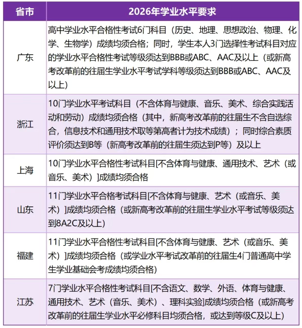 ①高中学业水平合格性考试各科成绩均合格/各科成绩均达到C级或以上;浙江省综合素质评价须达到B等(新高考改革前的往届生P等)及以上。