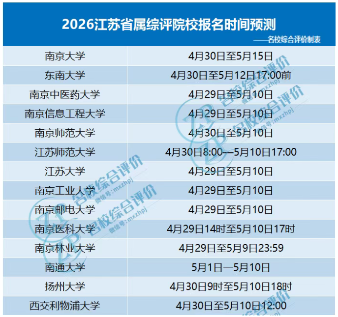 从往年情况来看,江苏省综合评价招生将于4月底5月初开启,以下时间节点根据2025年各高校招生简章整理制作,仅供参考!
