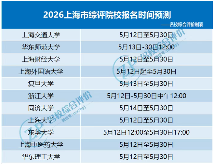 从往年情况来看,上海市综合评价招生将于5月中旬左右开启,以下时间节点根据2025年各高校招生简章整理制作,仅供参考!
