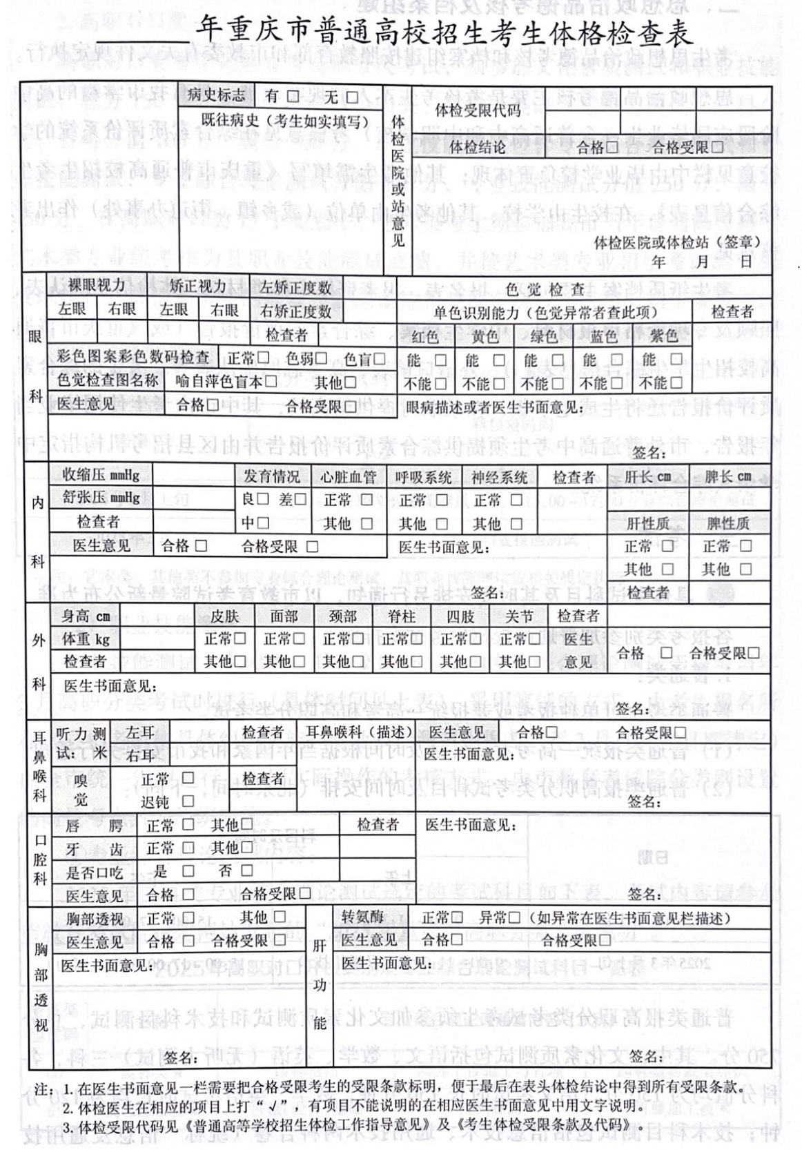 2026年重庆高考体检将于12月上旬启动(具体时间由各区县安排),按照国家有关规定,报名参加高考的所有考生都必须参加体检。体检结论直接影响专业选择、志愿填报及高校录取。高考体检主要检查哪些项目?自主选拔在线团队整理相关内容以便考生参考!