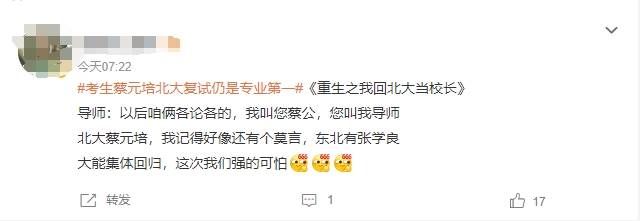 而后该考生也因与北大前校长蔡元培同名而备受热议。