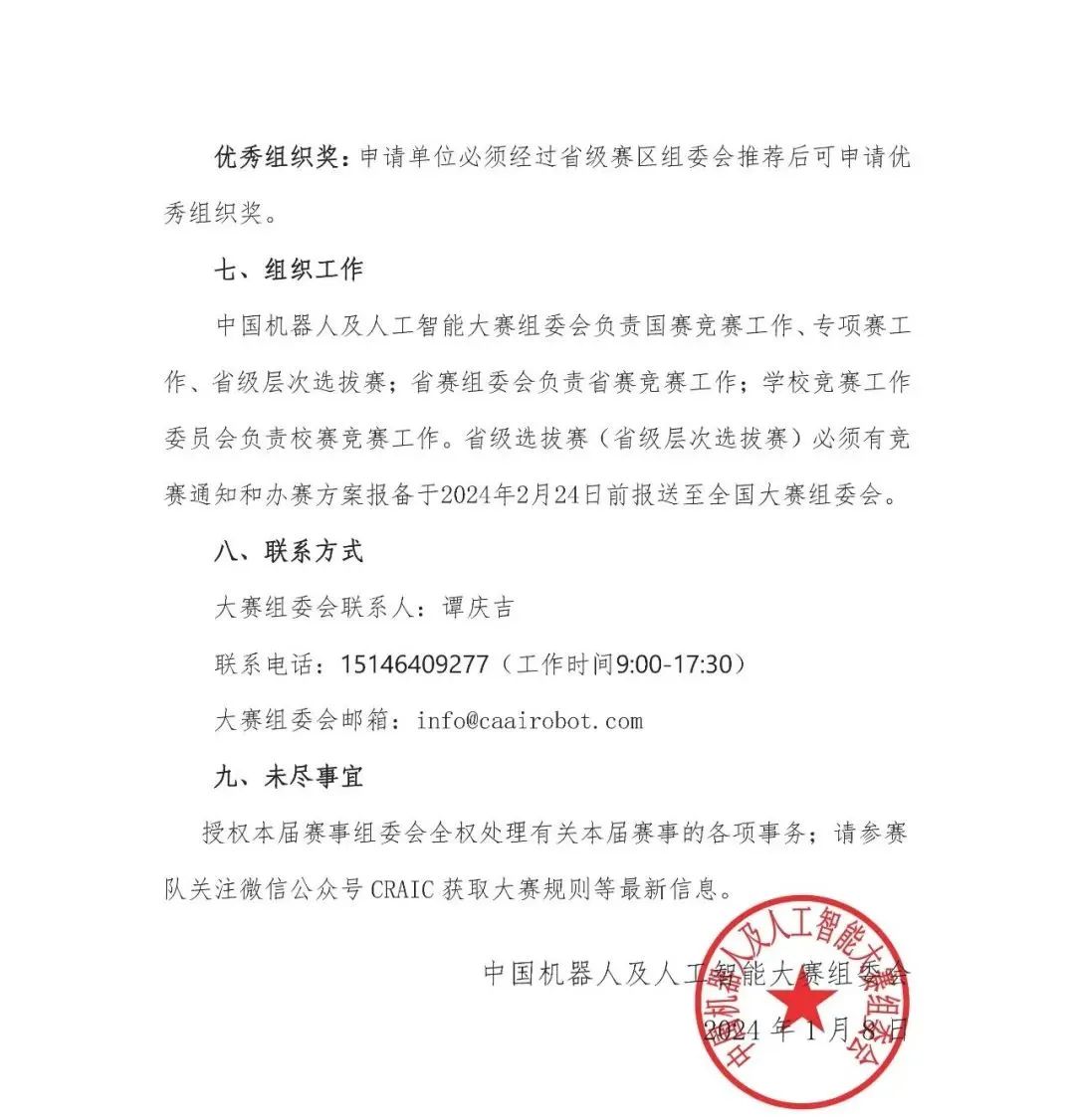 保研竞赛大学生竞赛加分2024中国机器人及人工智能大赛报名通知