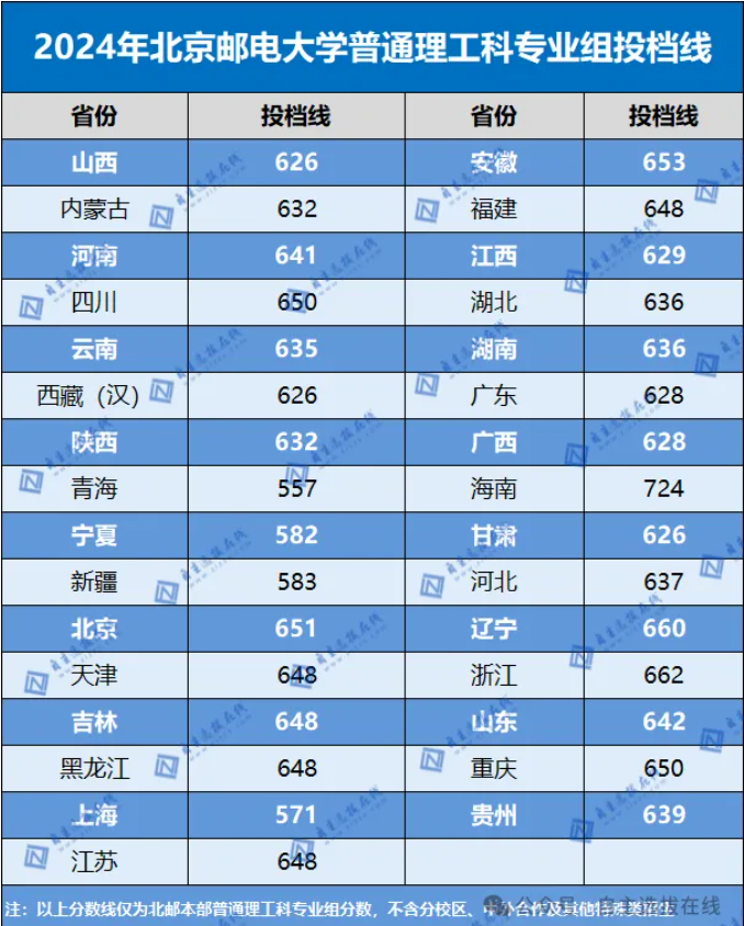 北邮物理类2024年各省市投档平均分平均分大约634分,位居全国20名左右,高居211第一名。