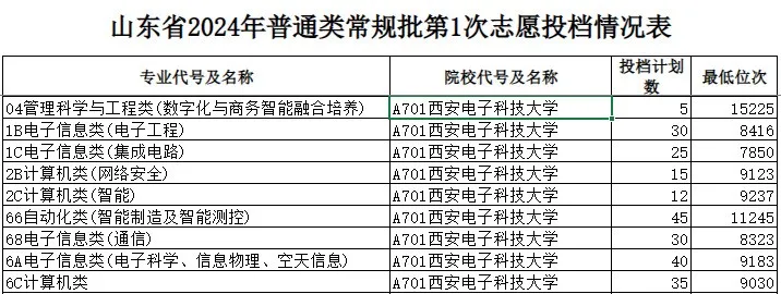 以山东2024年录取情况为例: