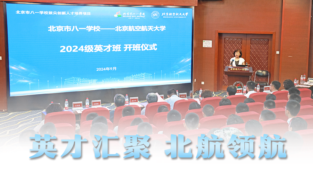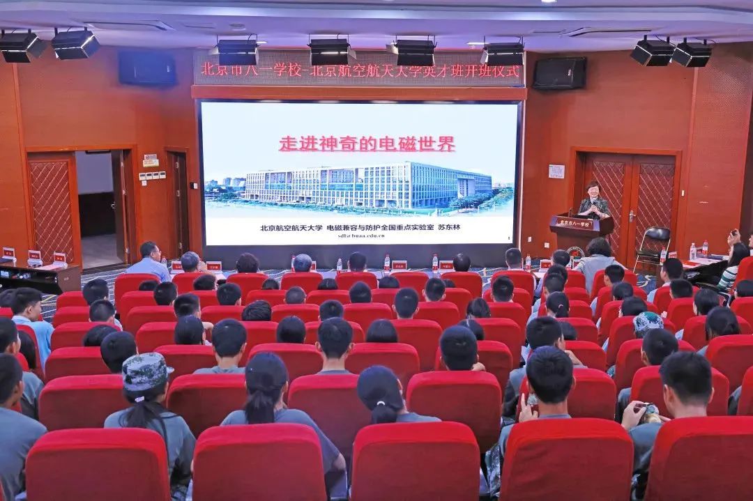 随后,北京市八一学校-北京航空航天大学2024级英才班开班仪式隆重举行,苏东林院士为英才班的学子们带来了开学第一课。