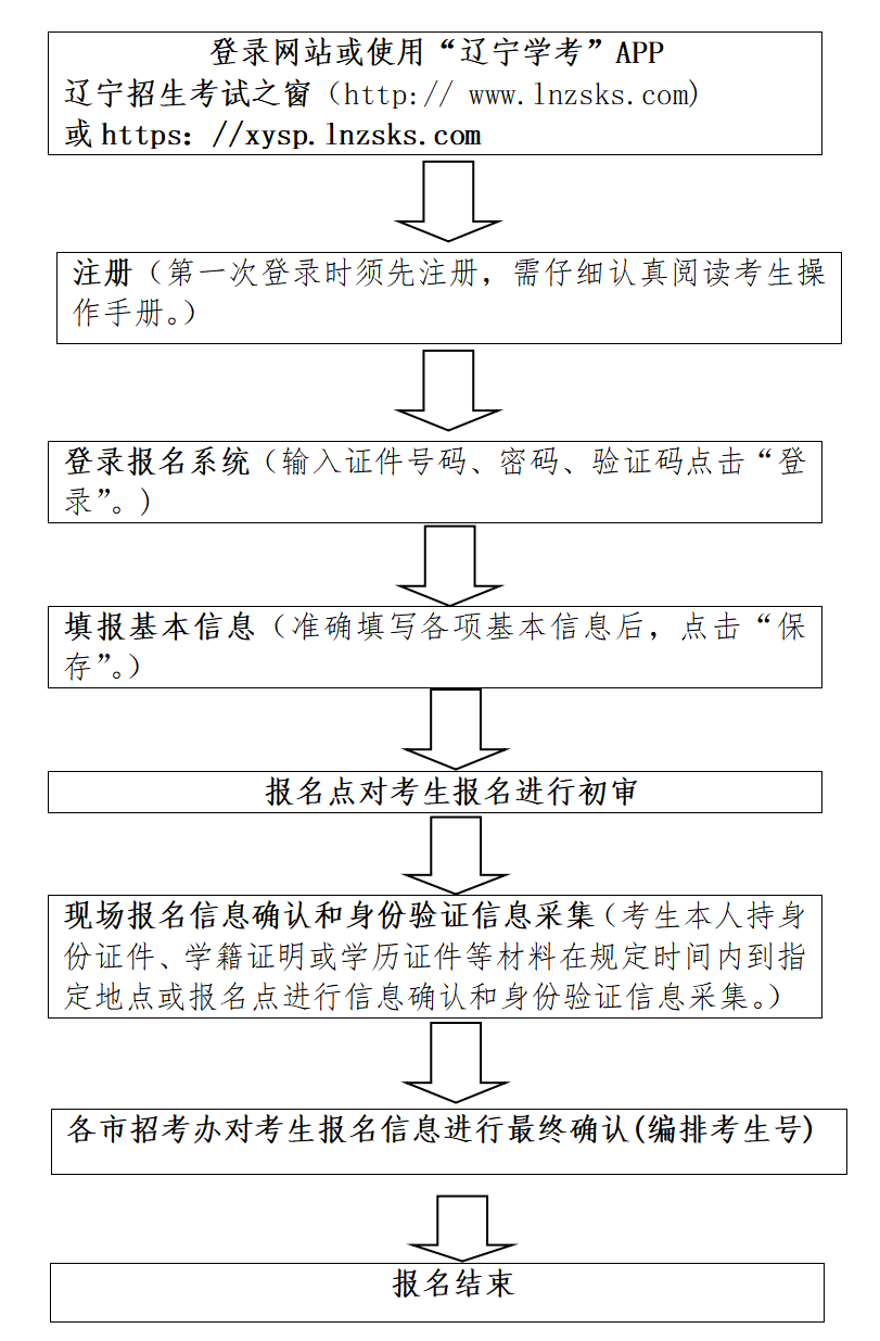 报名基本流程:考生网上填报基本信息→报名资格审查和身份验证信息采集→各市招考办对考生报名信息进行最终确认。