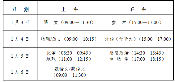 适应性测试时间为2025年1月3日至6日,具体科目及时间安排如下: