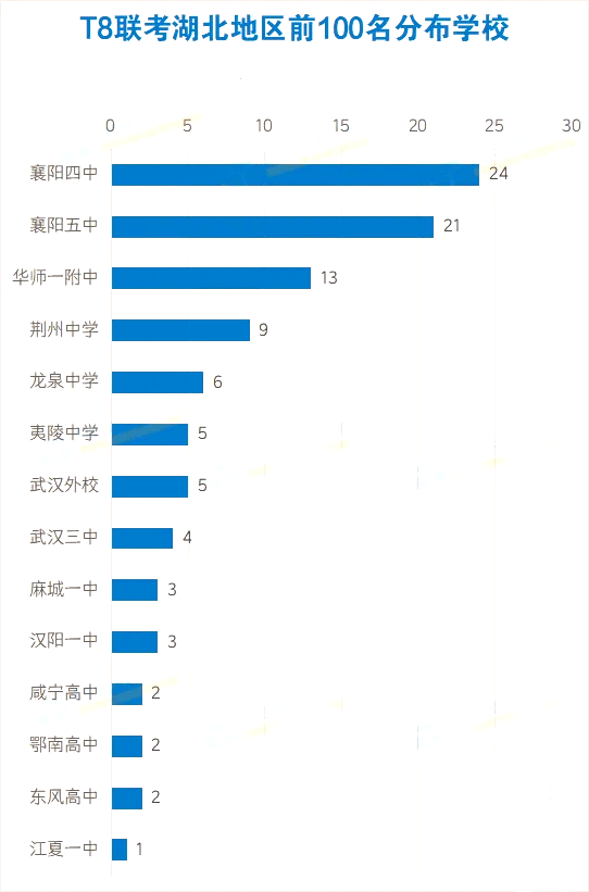 根据湖北升学通从相关学校获取的消息,此次T8联考,物理方向前100名,最高分692.5分。物理方向前100名中,襄阳四中以24人占据榜首,襄阳五中以21人紧随其后,华师一附中以13人位居第三。