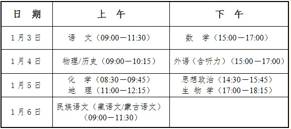 3.考试时间为2025年1月3日至6日,具体安排如下:
