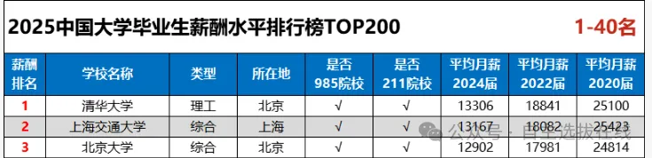 根据《2025中国大学毕业生薪酬水平排行》榜单显示,清华大学以286元的微弱优势在平均月薪上超过上交、北大,成为榜首。