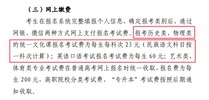 2026年高考报名费一般是多少钱?附全国各省缴费入口官网