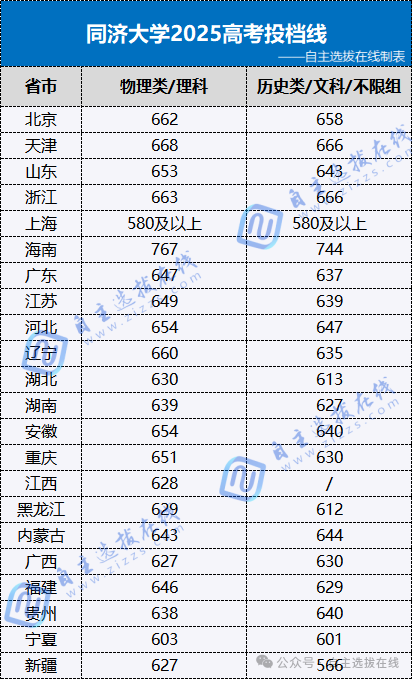 自主选拔在线为大家汇总整理了同济大学2025各省市高考投档分数线数据,供各位考生家长参考。