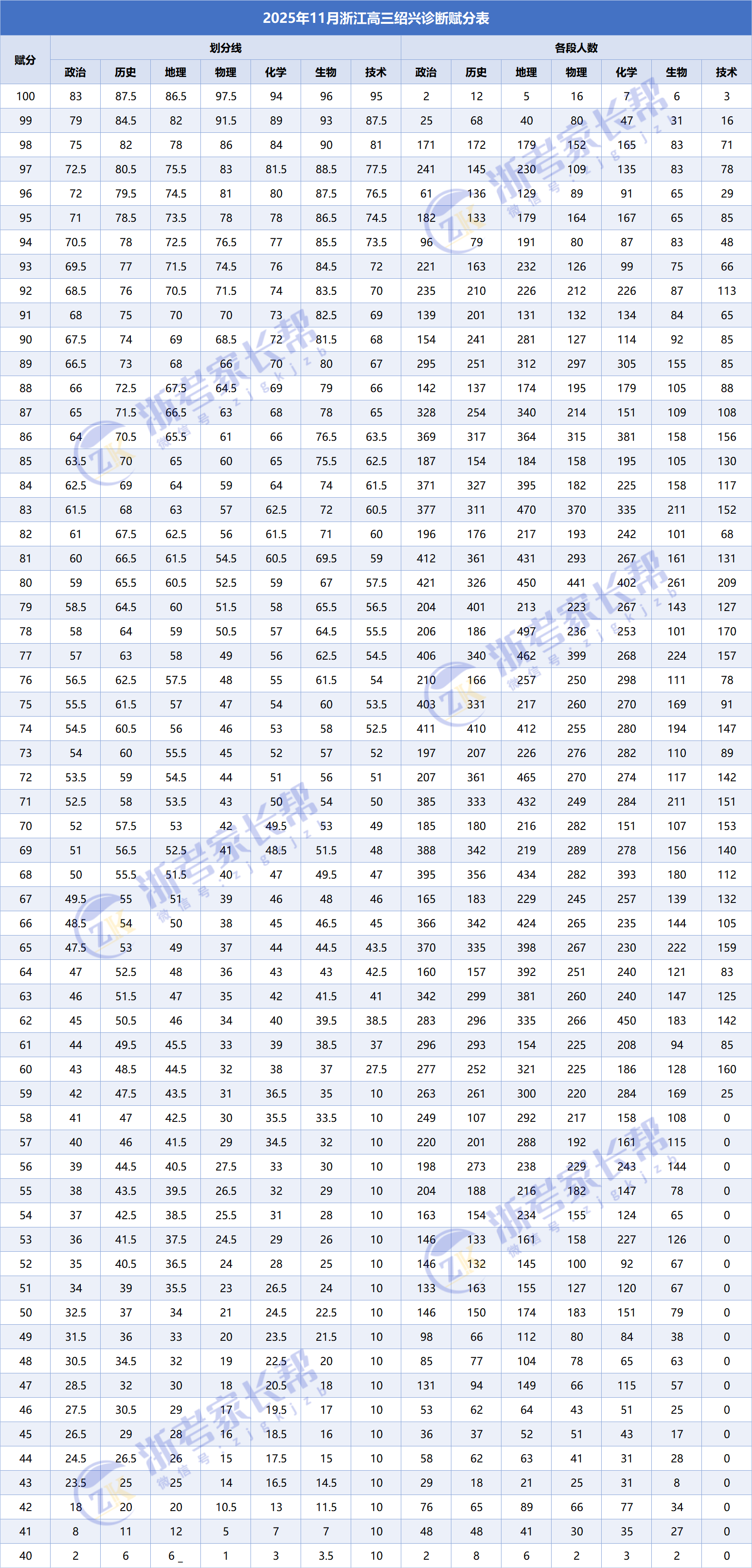 2025年11月绍兴高三一模赋分表及划线公布