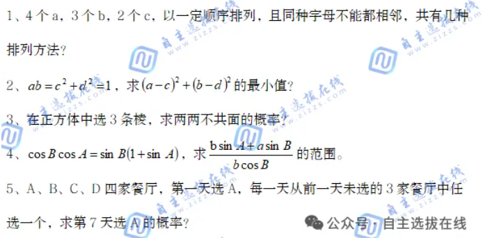 数学:数学属于高考压轴题难度,很小部分简单,大部分涉及复杂计算