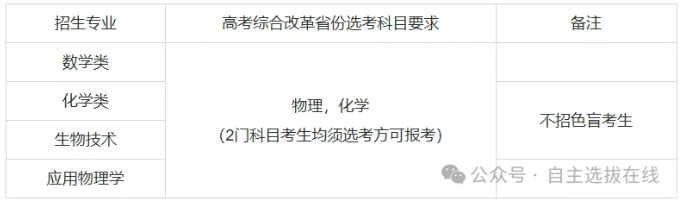 B类:数学、物理、化学、生物、信息学等学科领域具有突出才能和表现的考生。