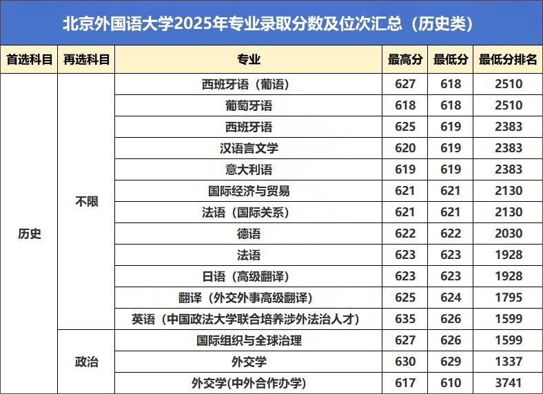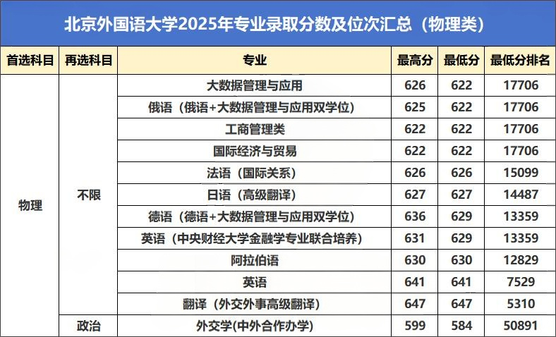 北京外国语大学2025年录取专业分数线公布,最高647分!