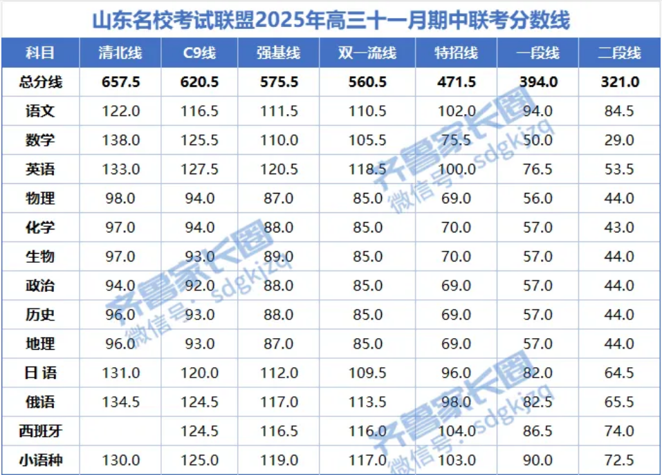 上周,山东名校考试联盟济南—淄博片区11月期中联考已圆满落幕。备受考生与家长关注的各科分数线现已正式公布,具体详情如下。