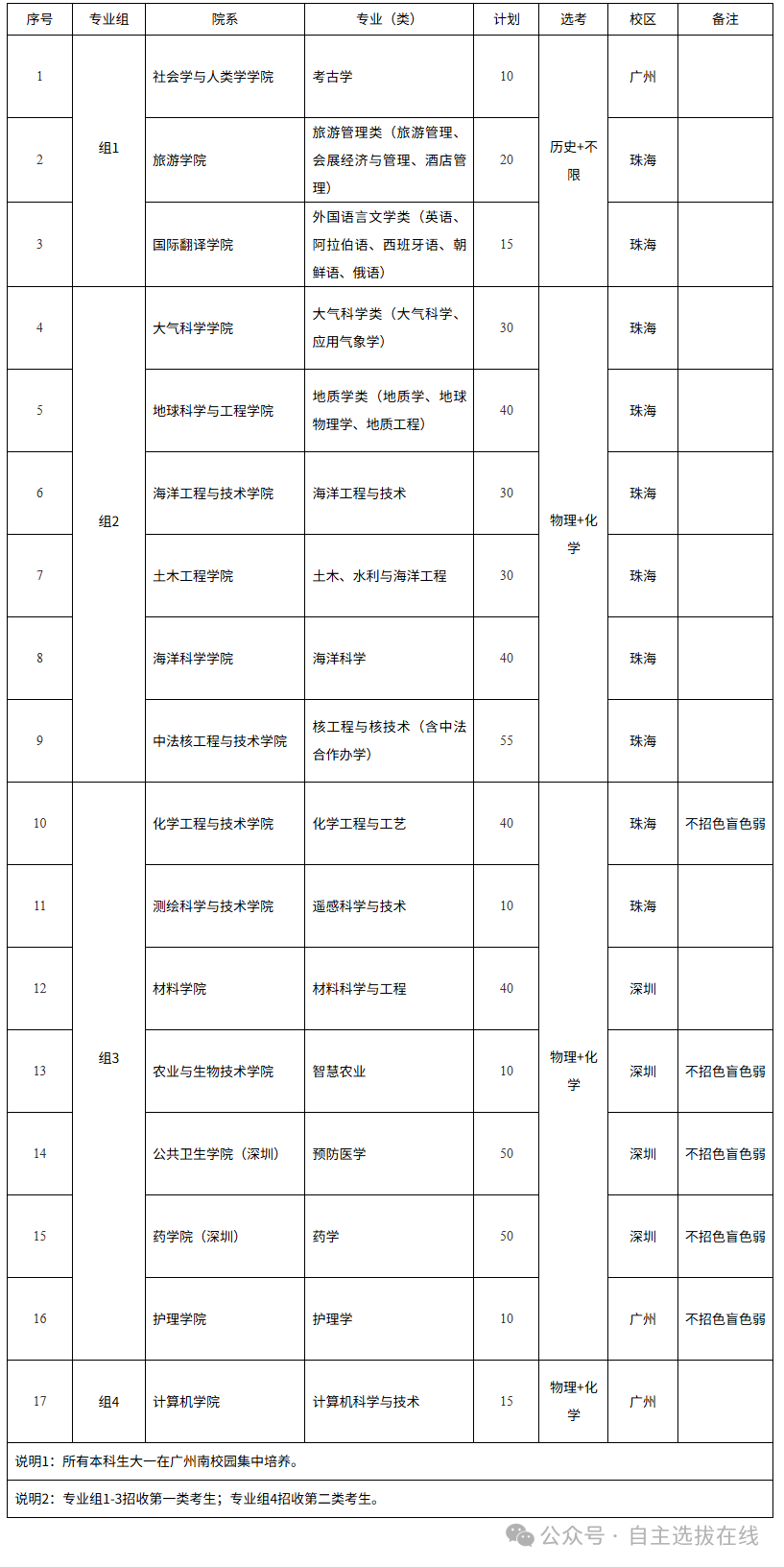 中山大学对第一阶段报名材料进行初审,初审结果于6月中旬公布。高考志愿填报期间,通过初审的考生务必在“广东省普通高考志愿填报系统”特殊类型招生批次填报综合评价志愿,未填报者视为放弃综合评价的考核和录取。生只可填报一个专业组志愿,且必须符合选考科目要求。