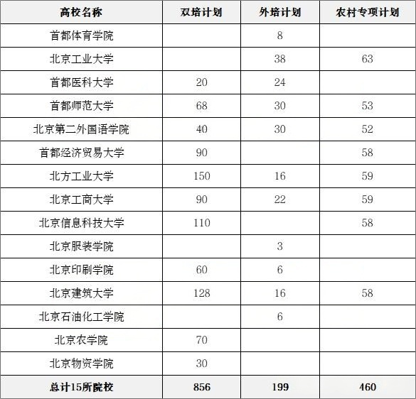 下面展示2025年北京双培、外培和农村专项招生院校和计划数↓↓↓