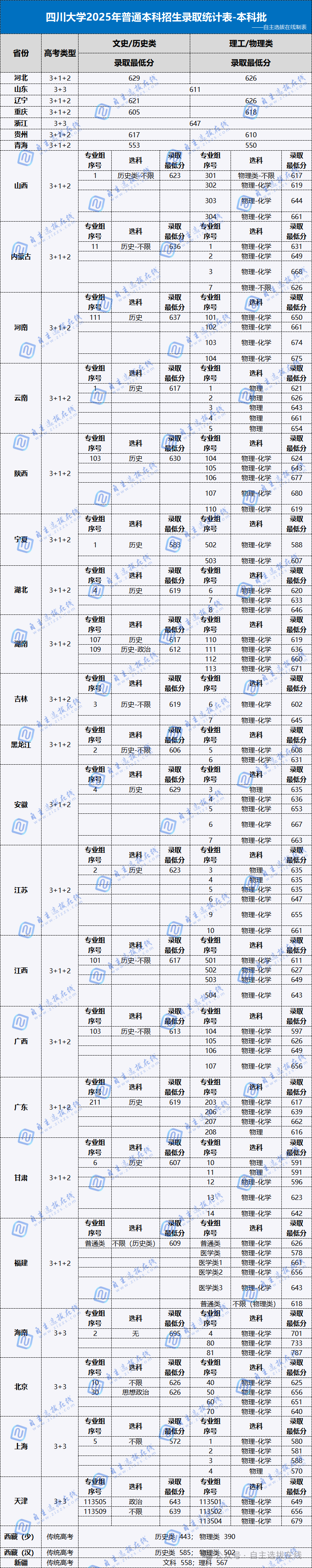 自主选拔在线团队根据四川大学官网公布的数据,为大家汇总整理了的四川大学2025年各省市高考本科批录取分数线,供各位考生家长参考。