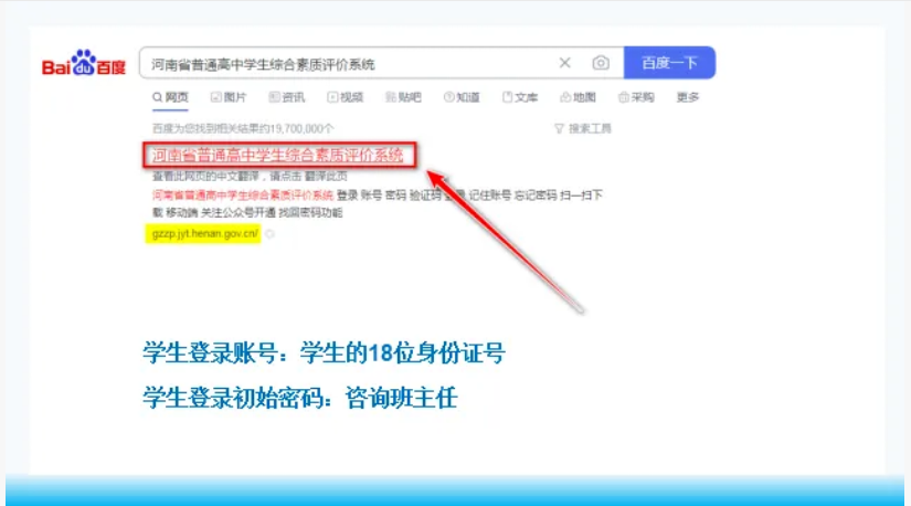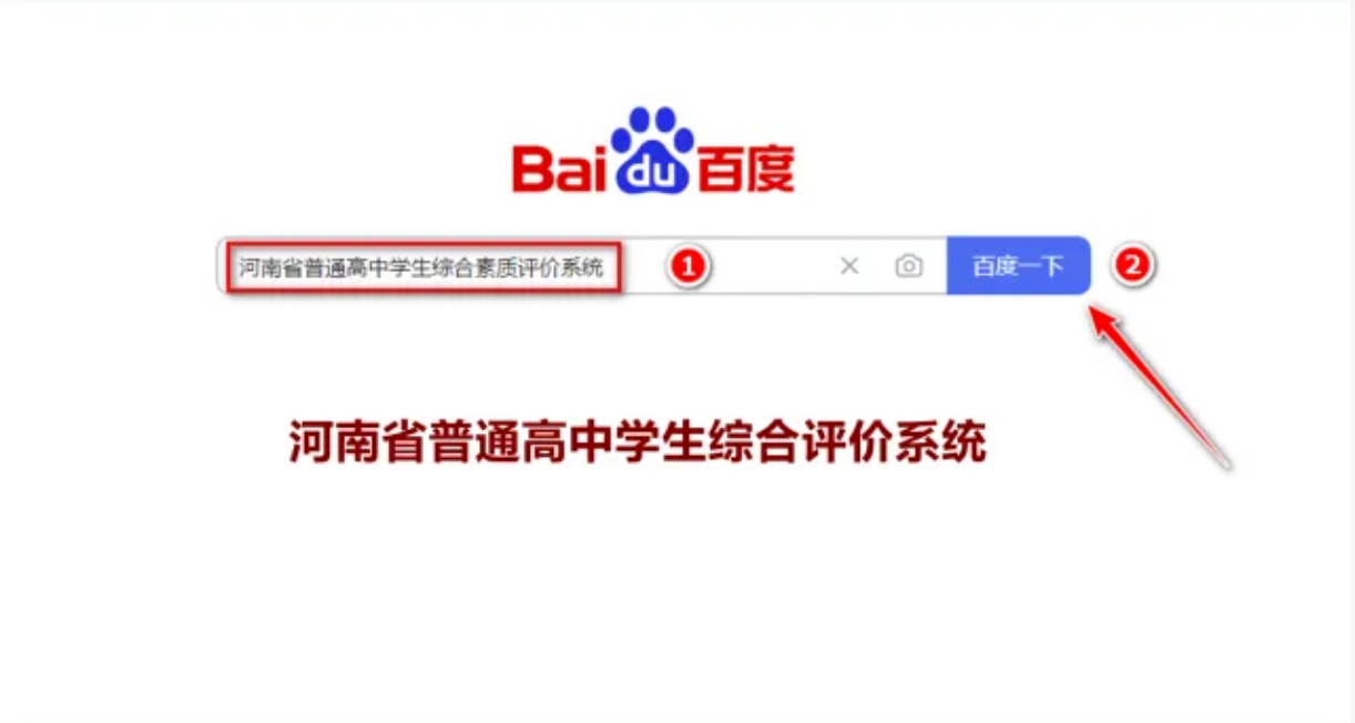 1、打开百度搜索:河南省普通高中学生综合素质评价系统。