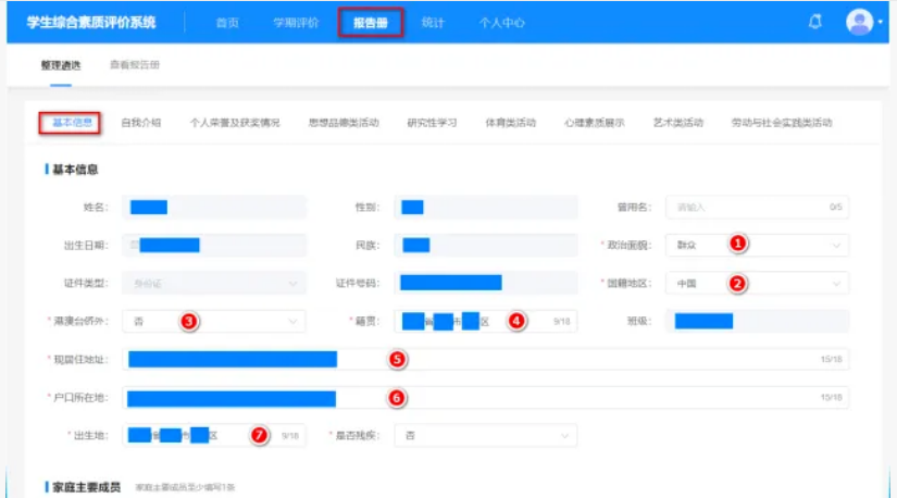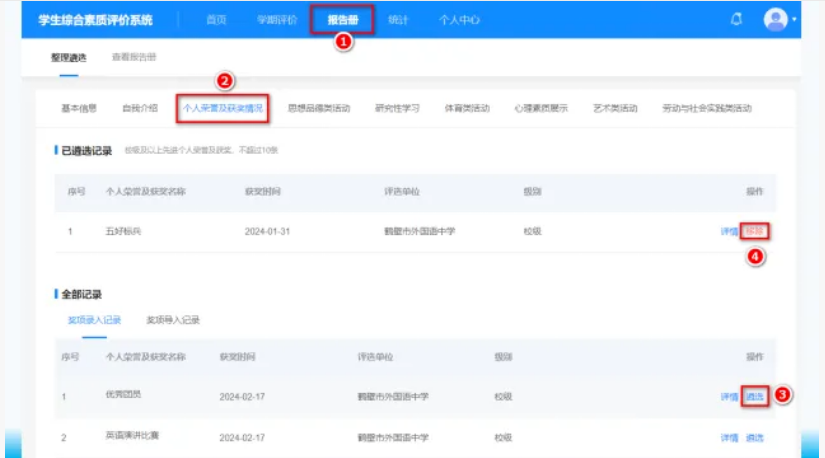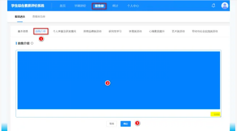 9、学生报告册需要学生完善自己的信息和遴选各维度个人记录。