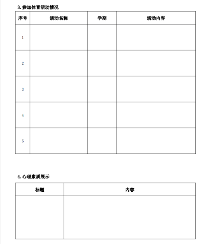 三、身心健康( 体育类活动5条/学年、心理素质展示1条/学年)